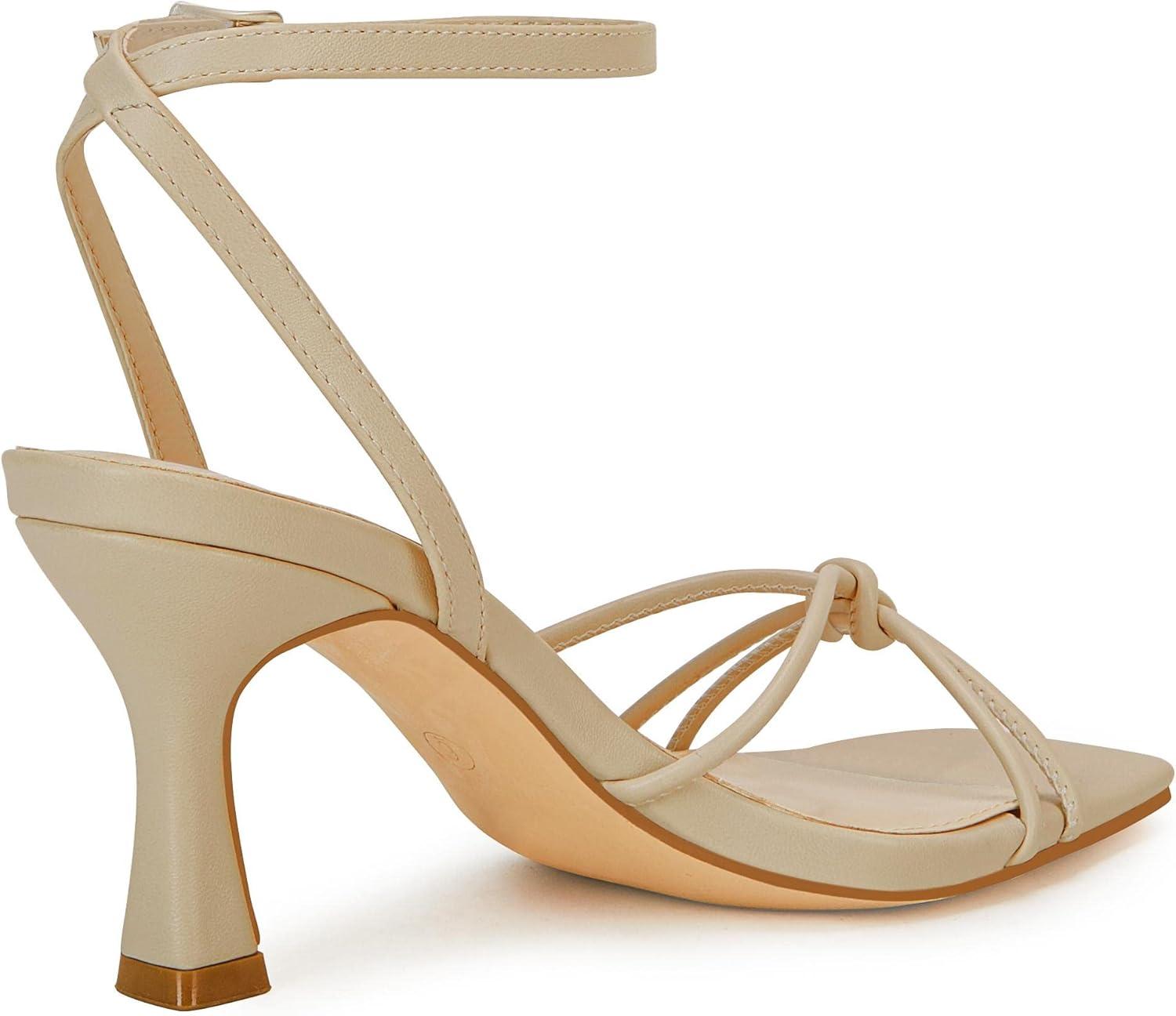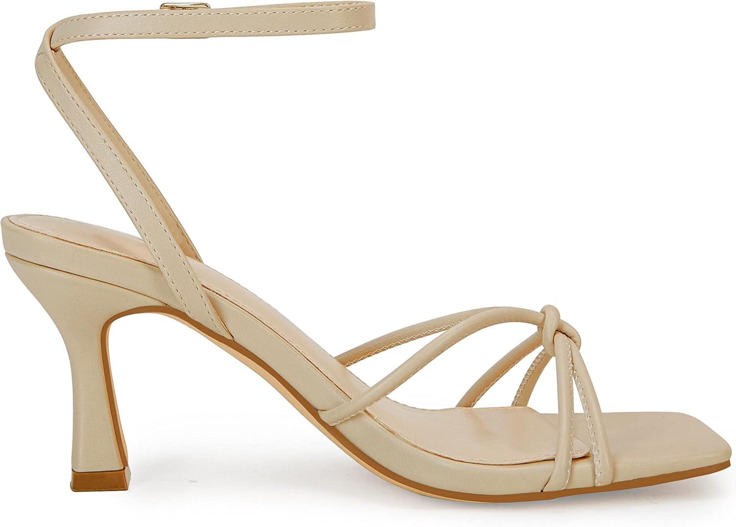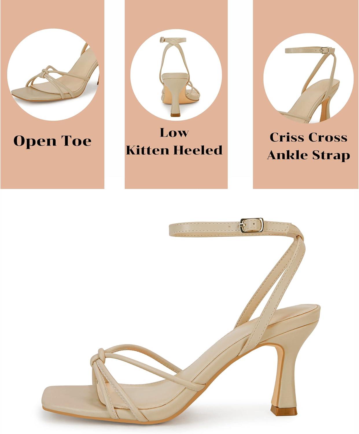 LAICIGO Women’s Square Open Toe Heeled Sandals Stiletto Kitten Heel Ankle Buckle Strap Slingback Summer Dress Sandals(Apricot)