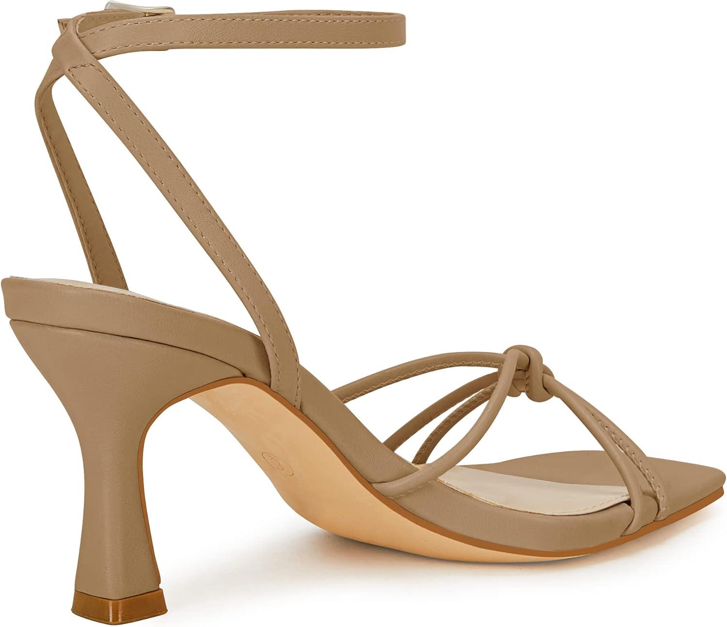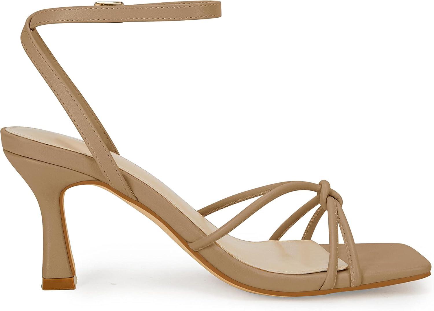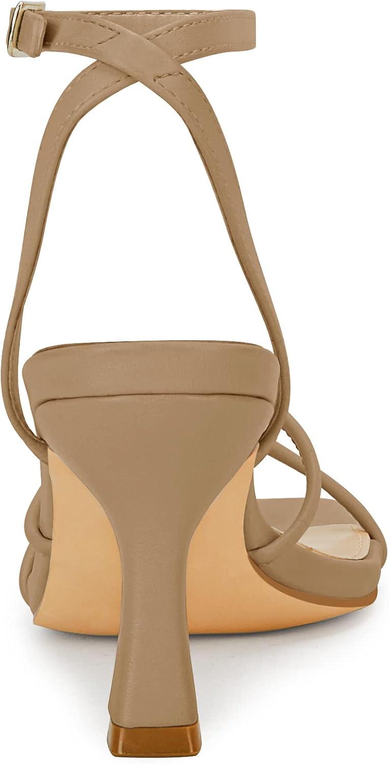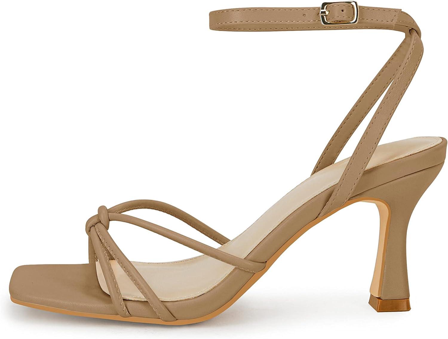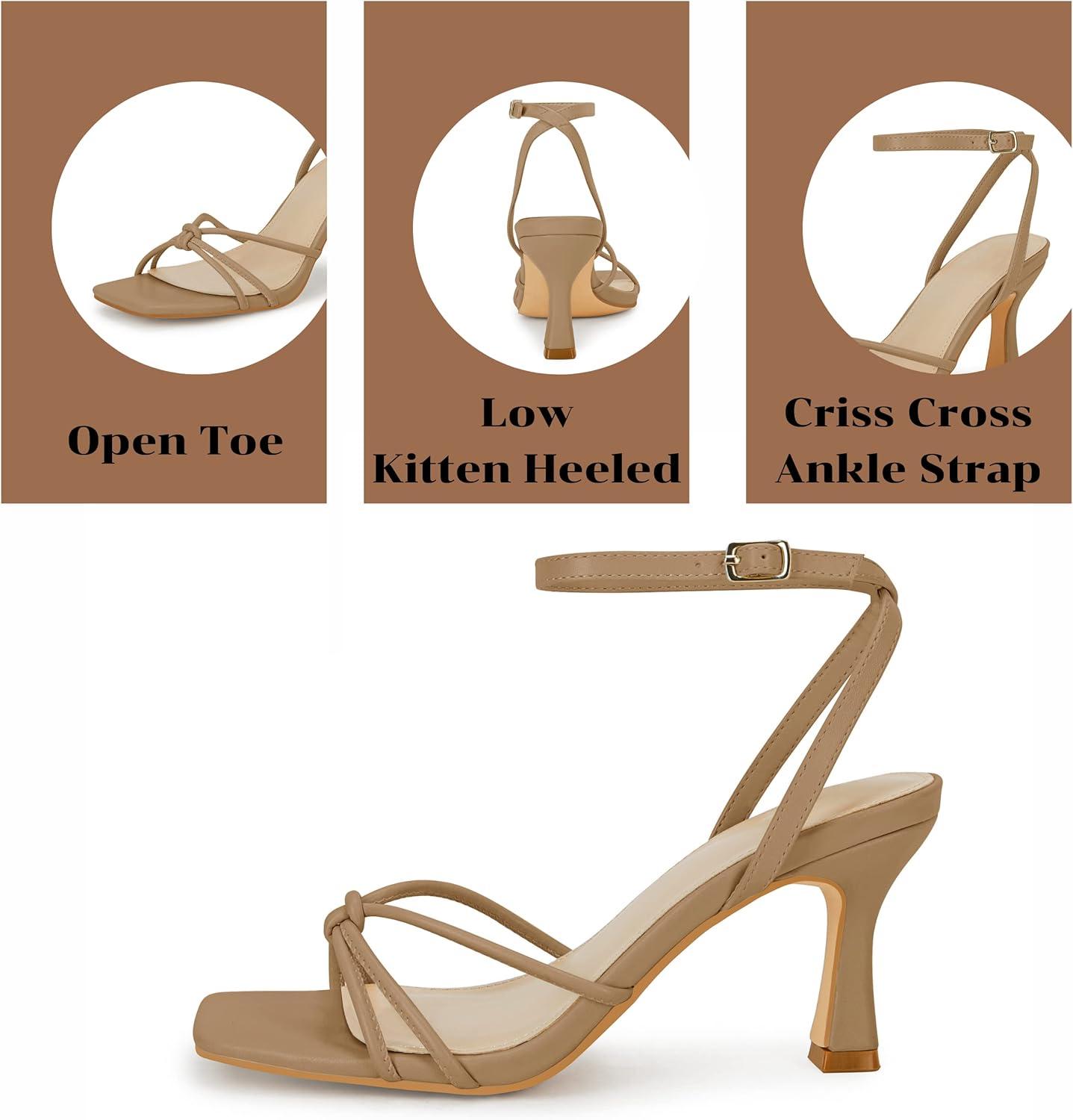 LAICIGO Women’s Square Open Toe Heeled Sandals Stiletto Kitten Heel Ankle Buckle Strap Slingback Summer Dress Sandals(Khaki)