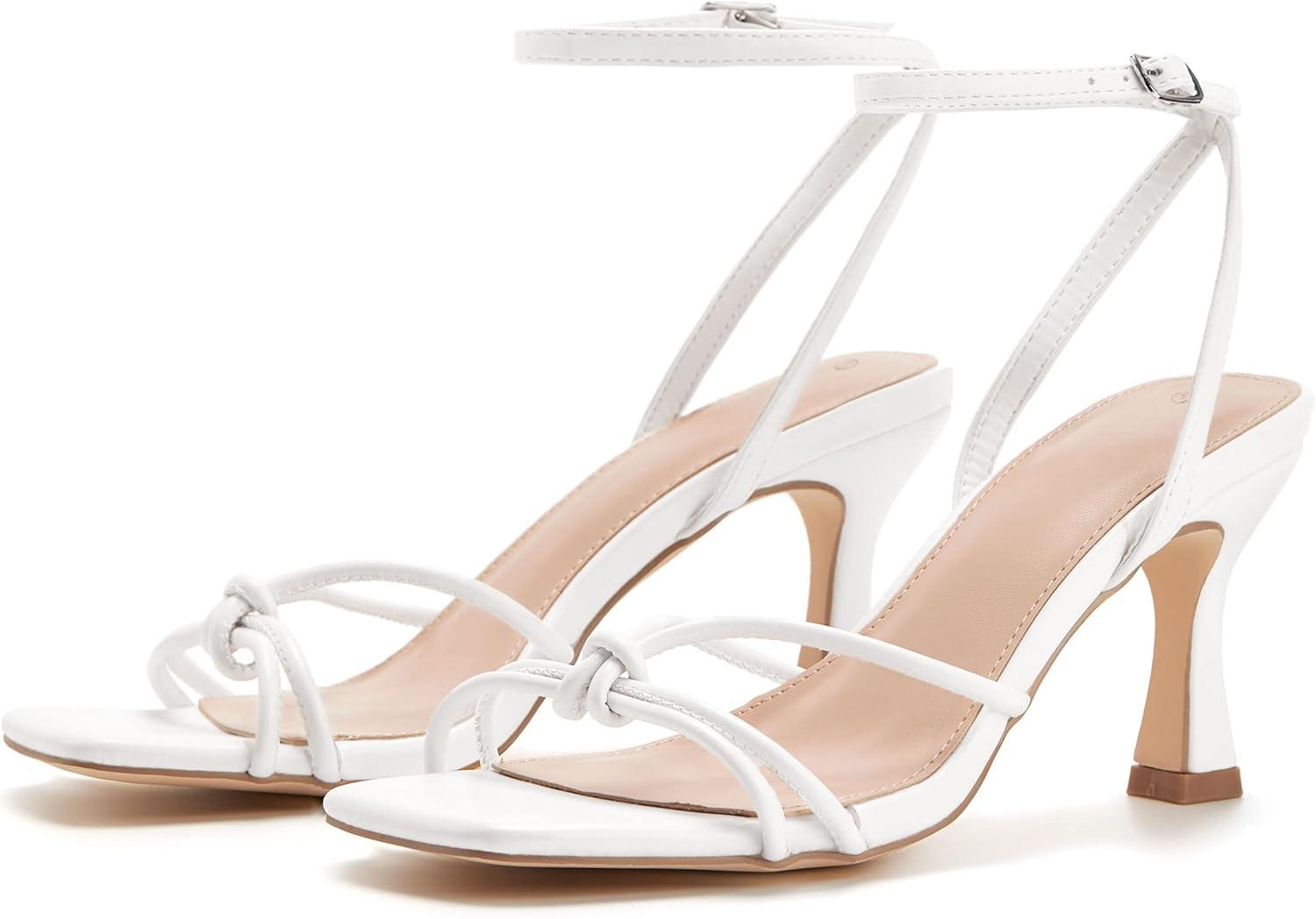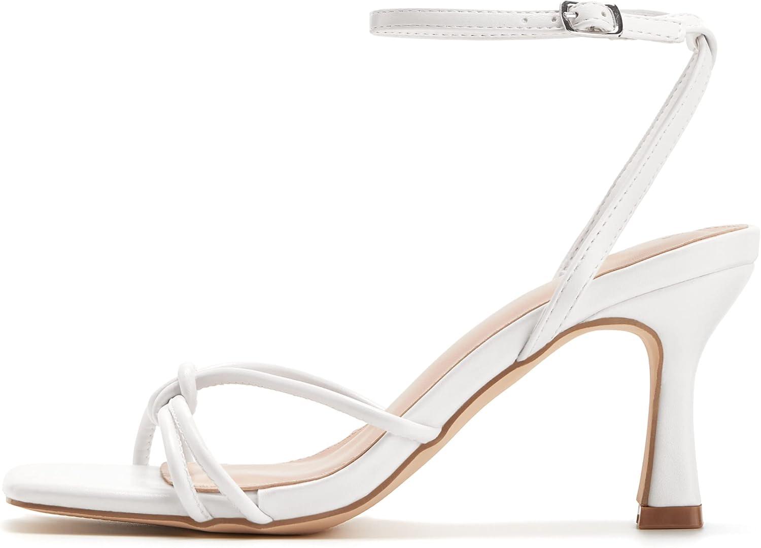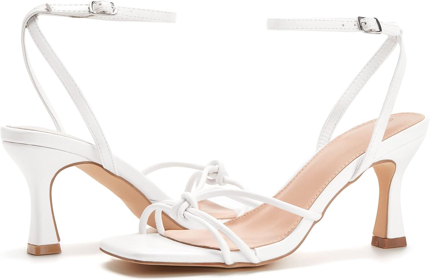 LAICIGO Women’s Square Open Toe Heeled Sandals Stiletto Kitten Heel Ankle Buckle Strap Slingback Summer Dress Sandals(White)